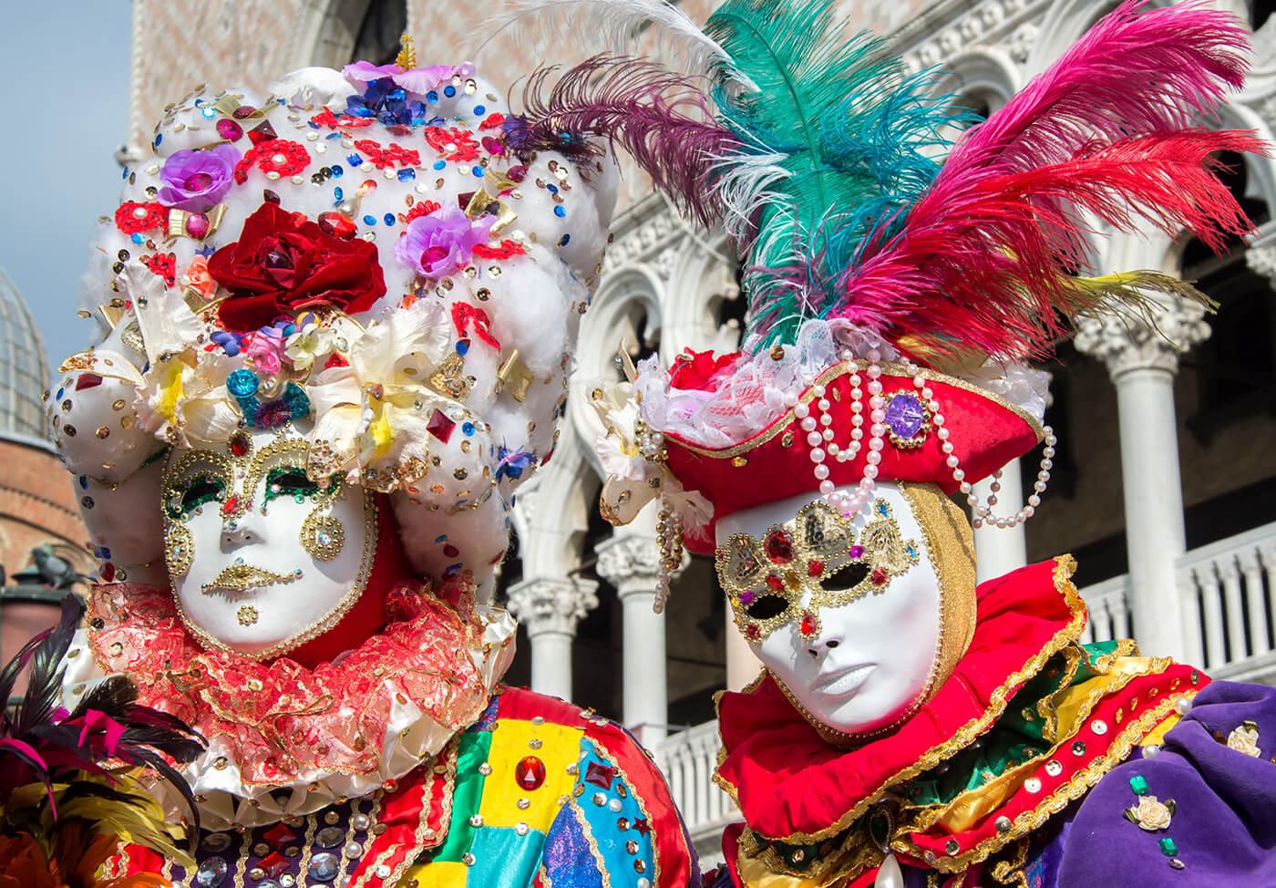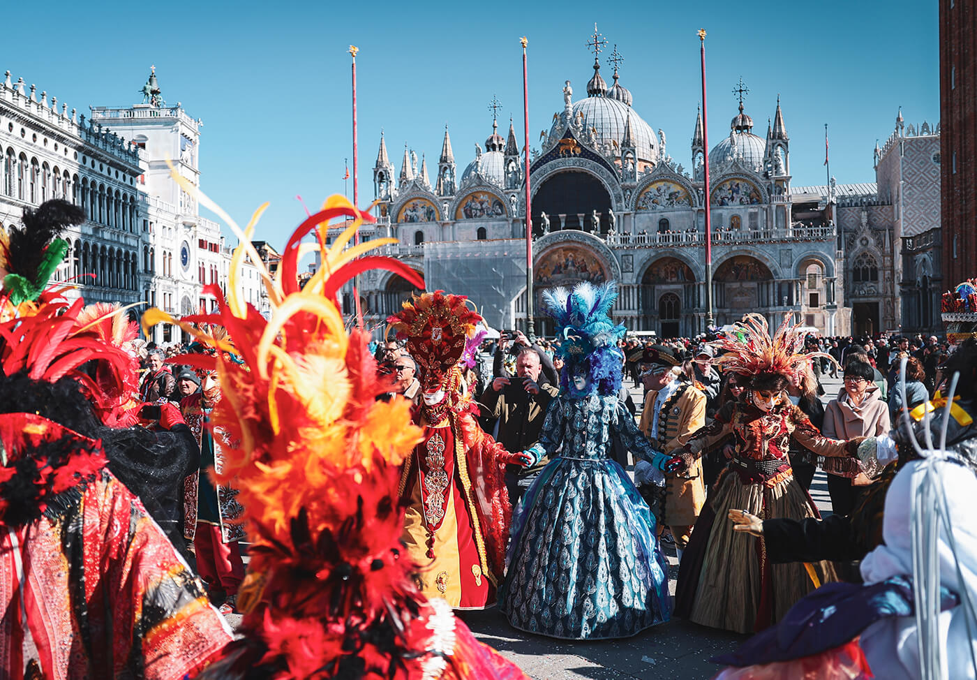 Venezia sorge nel cuore della laguna veneta, lungo la costa nord-orientale dell’Italia, affacciata sull’Adriatico. È un arcipelago di oltre cento isole collegate da ponti e canali, un labirinto di pietra e acqua che non trova eguali al mondo. Qui, tra calli, campielli e palazzi bizantini che si specchiano nelle onde, si svolge ogni anno uno degli eventi più straordinari della cultura europea: il Carnevale di Venezia. Non è una semplice festa di maschere, ma un rito identitario che intreccia arte, storia e teatralità. La città stessa, con la sua luce obliqua e i riflessi cangianti, diventa un teatro a cielo aperto, dove l’anonimato si trasforma in libertà e ogni angolo si tinge di mistero. La cornice principale è Piazza San Marco, dominata dalla Basilica omonima e dal Palazzo Ducale, ma l’intera città si anima in un mosaico di spettacoli, cortei d’acqua, performance e balli in costume, diffusi tra calli, campi e palazzi storici.
